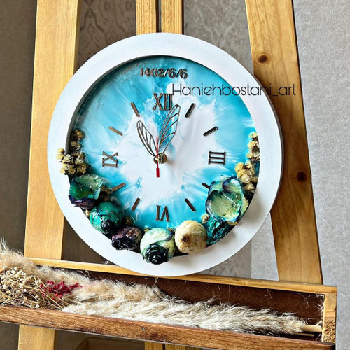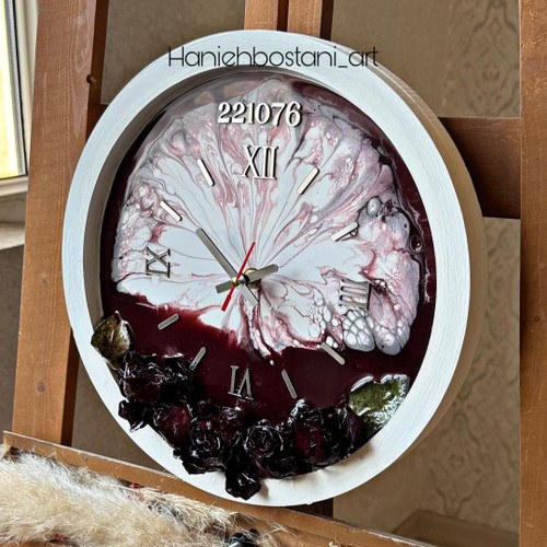 ساعت دیواری رزینی با گل های طبیعی جاودان شده