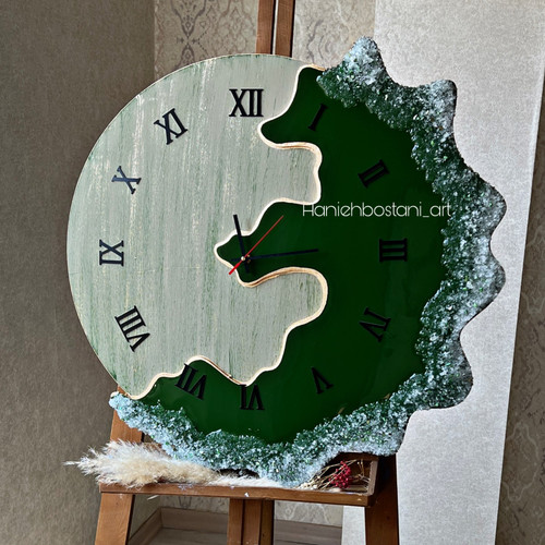 ساعت دیواری طرح دفرمه رزینی کرم و سبز