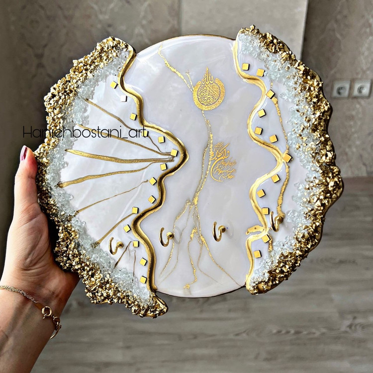 جاکلیدی دیواری رزینی مدل دفرمه با آیت الکرسی و وانیکاد