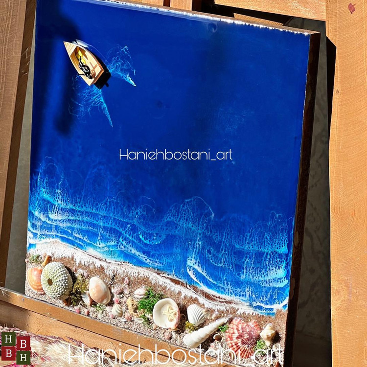 تابلو دیواری رزینی طرح دریا مدل مربع