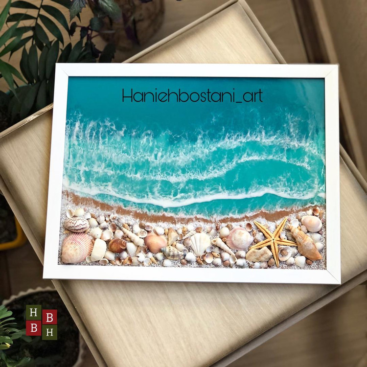 تابلو دیواری رزینی طرح خاص و آرامش بخش دریا مدل مستطیل