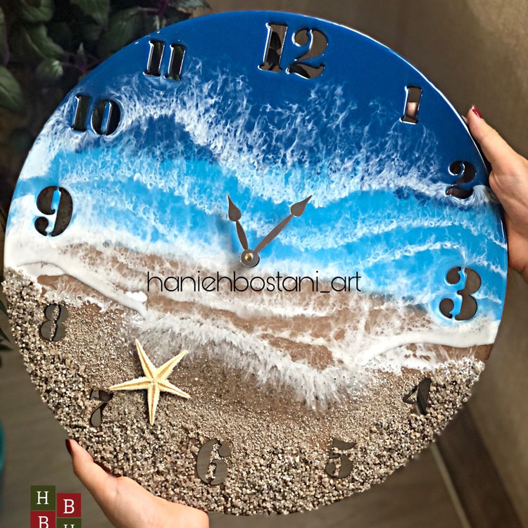 ساعت دیواری رزینی طرح خاص و آرامش بخش دریا با اعداد تو خالی