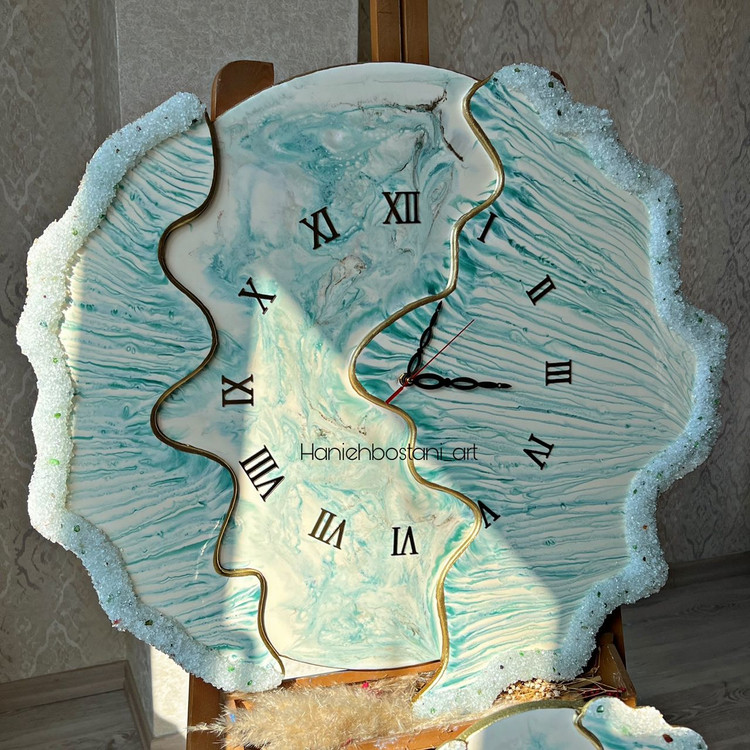 ساعت دیواری طرح دفرمه رزینی کرم و سبز