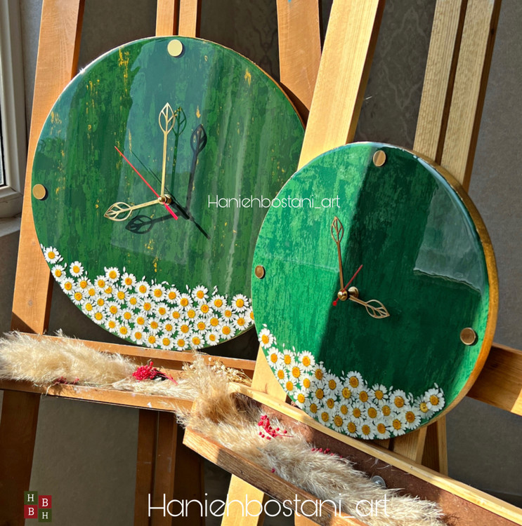 ساعت دیواری رزینی با گل های طبیعی بابونه
