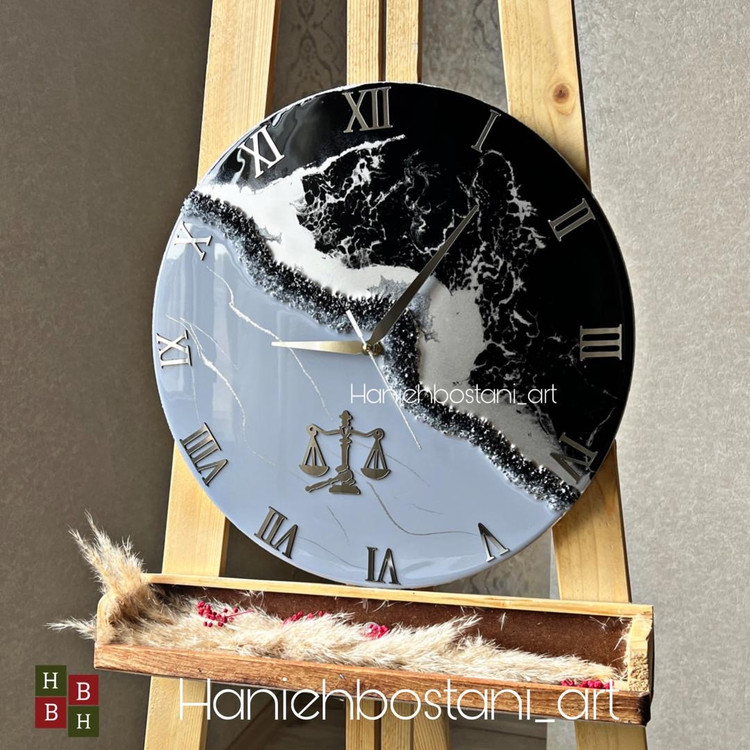 ساعت دیواری رزینی دو رنگ طوسی و مشکی