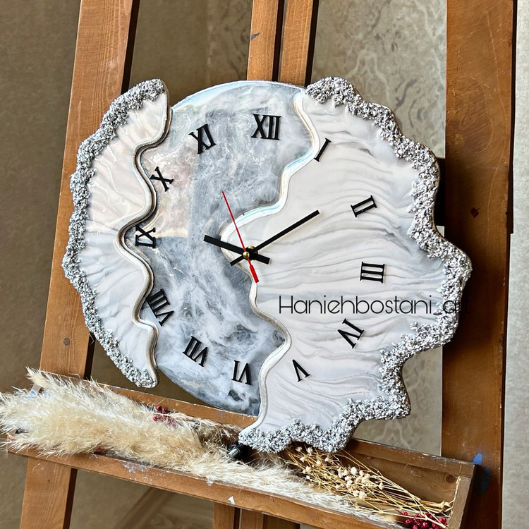 ساعت دیواری طرح دفرمه رزینی سفید ، نقره ای