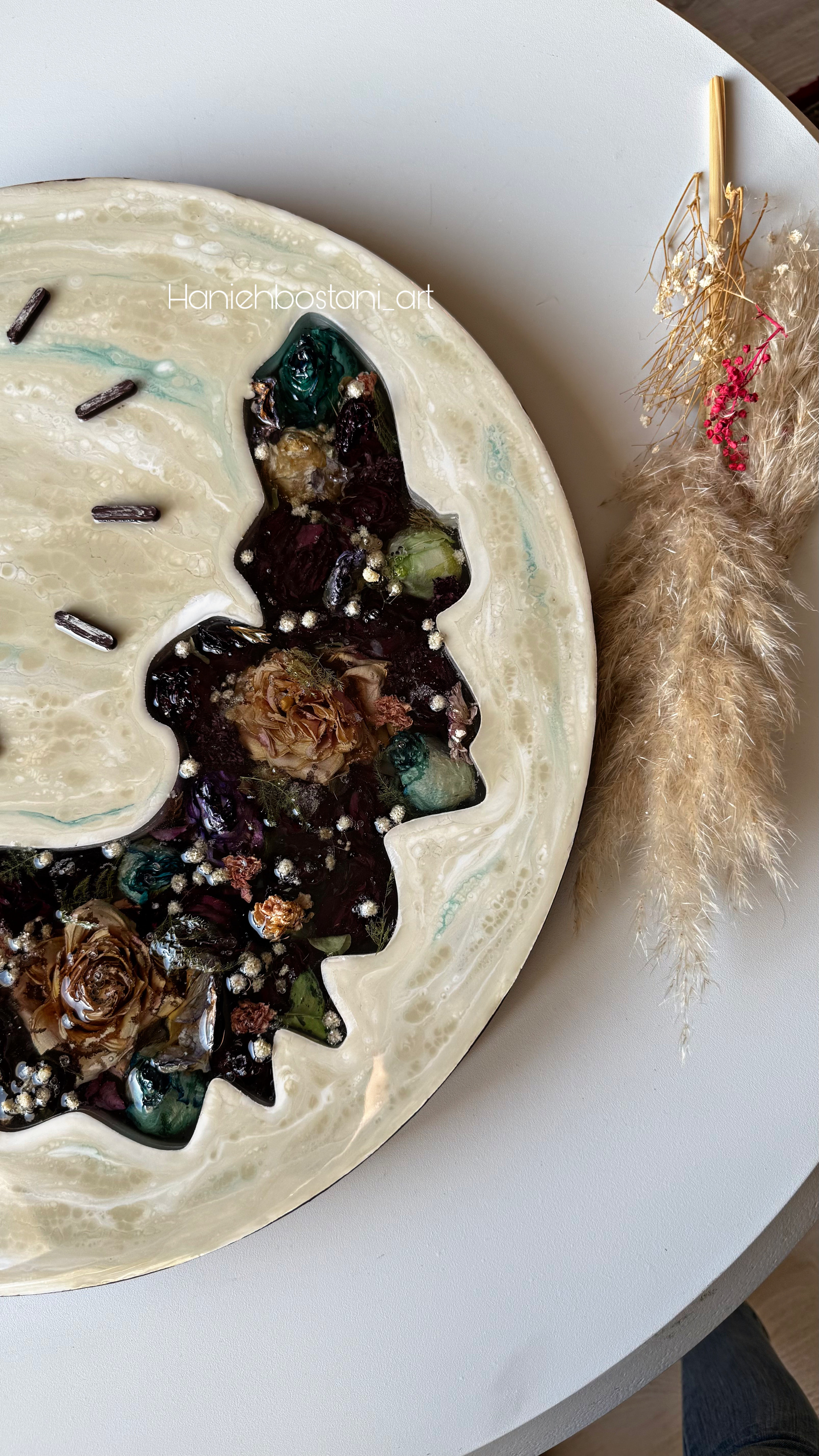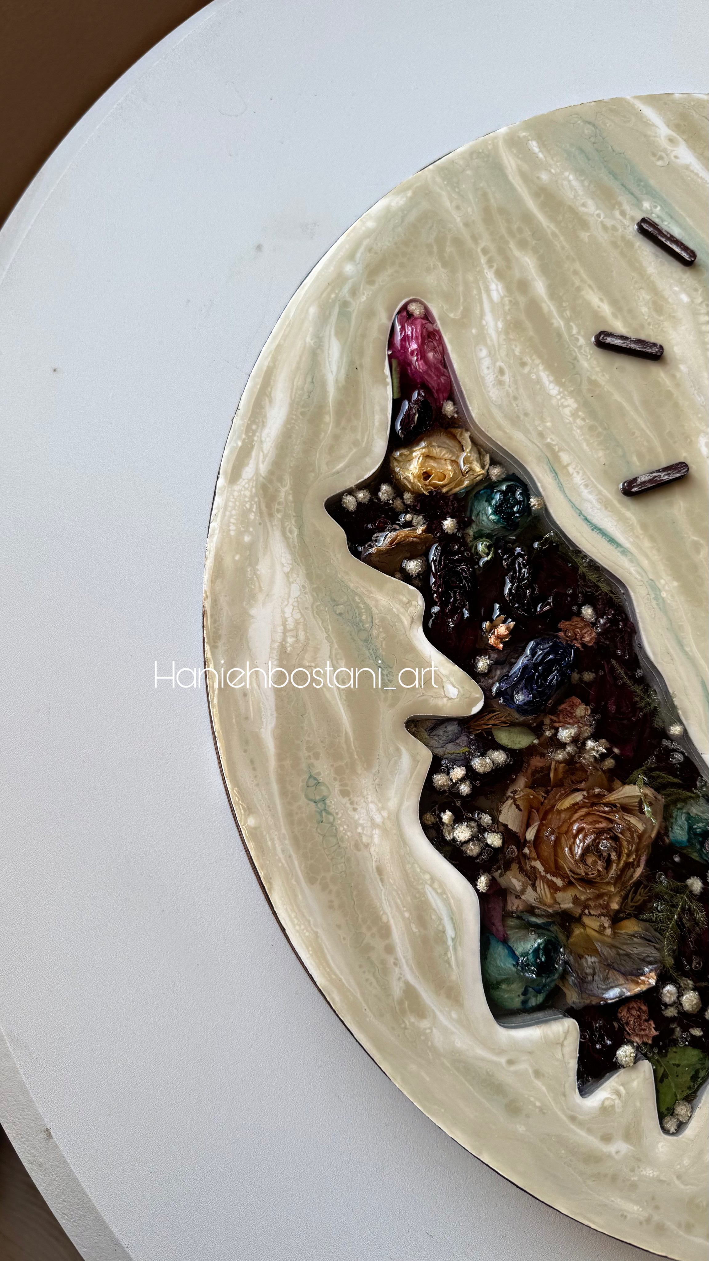 رزین اپوکسی وارداتی بر روی ام دی اف خارجی با گل های طبیعی جاودان شده و عکس عروسی | با طراحی منحصر به فرد جلوه ای خاص به دکوراسیون شما میدهد |