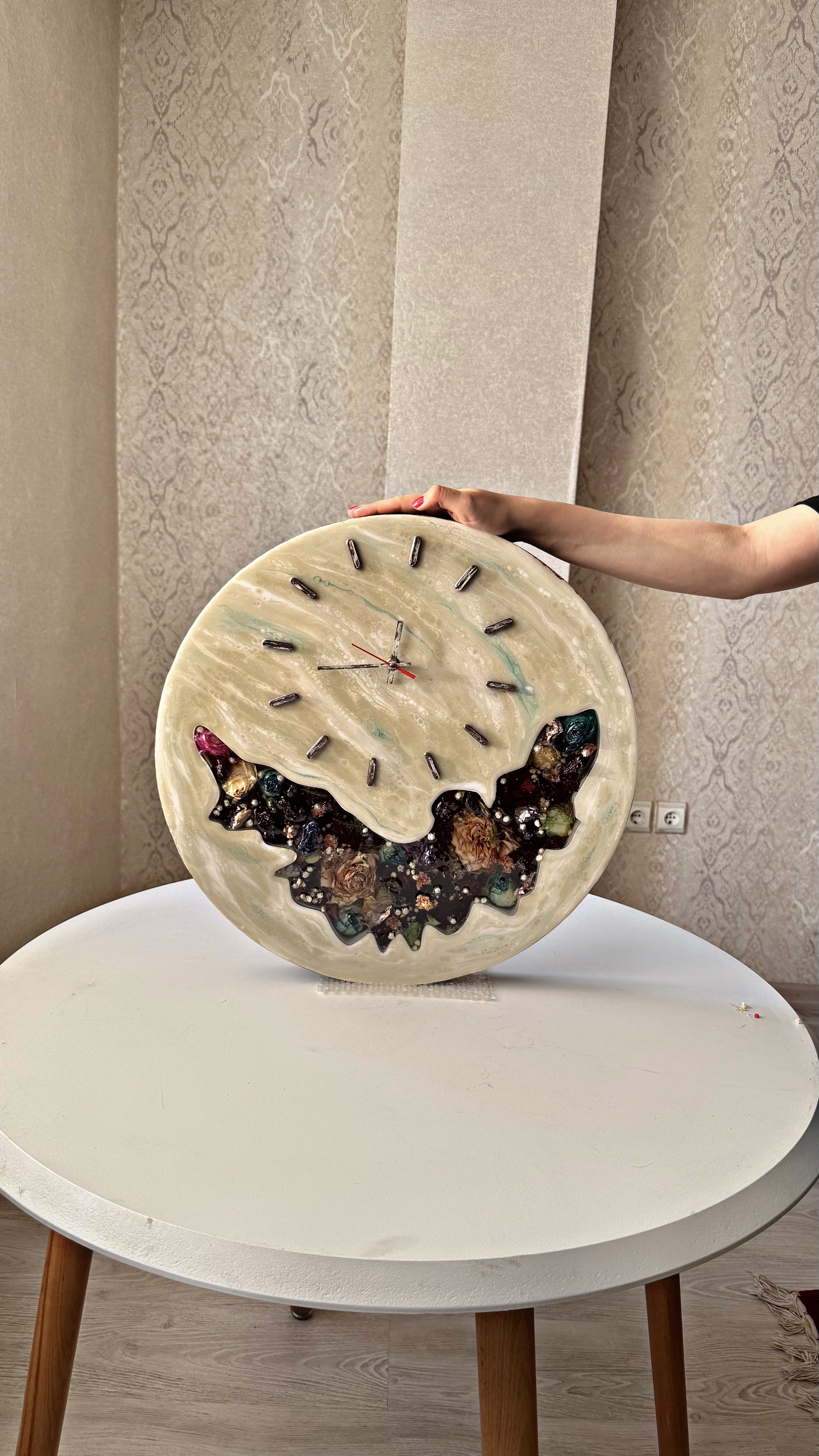 این ساعت دیواری رزینی با طراحی منحصر به فردش و با گلهای یادگاری شما جلوه ای خاص به دکوراسیون شما میده پس همین الان سفارش بده و از زیبایی این ساعت لذت ببر