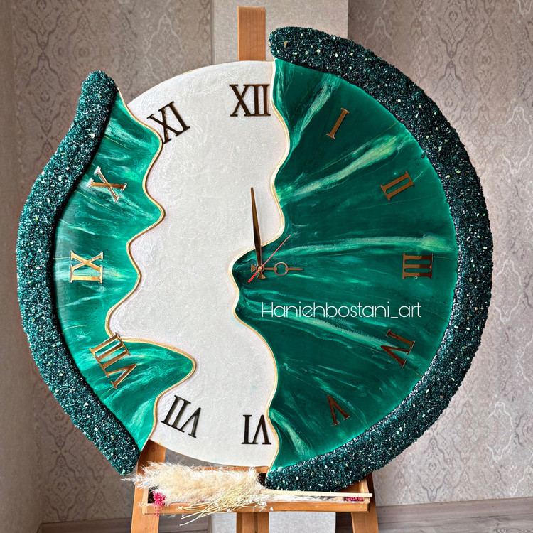 ساعت دیواری طرح دفرمه رزینی کرم و سبز