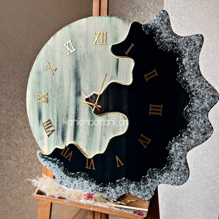 ساعت دیواری طرح دفرمه ترکیب رزین و پتینه