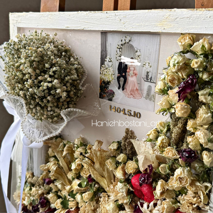رزین اپوکسی وارداتی بر روی ام دی اف خارجی با گل های طبیعی جاودان شده و عکس عروسی | با طراحی منحصر به فرد جلوه ای خاص به دکوراسیون شما میدهد |