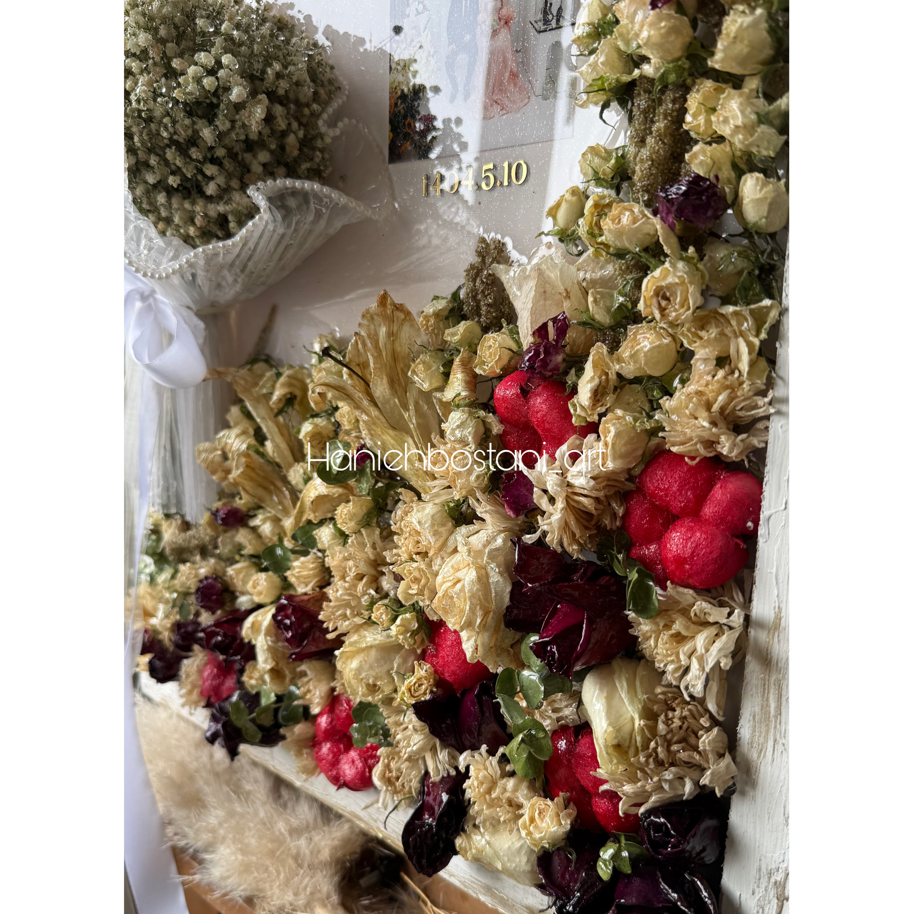 تابلو رزینی با گل های طبیعی جاودان شده و عکس