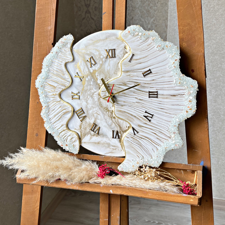 ساعت دیواری طرح دفرمه رزینی سفید ، طلایی