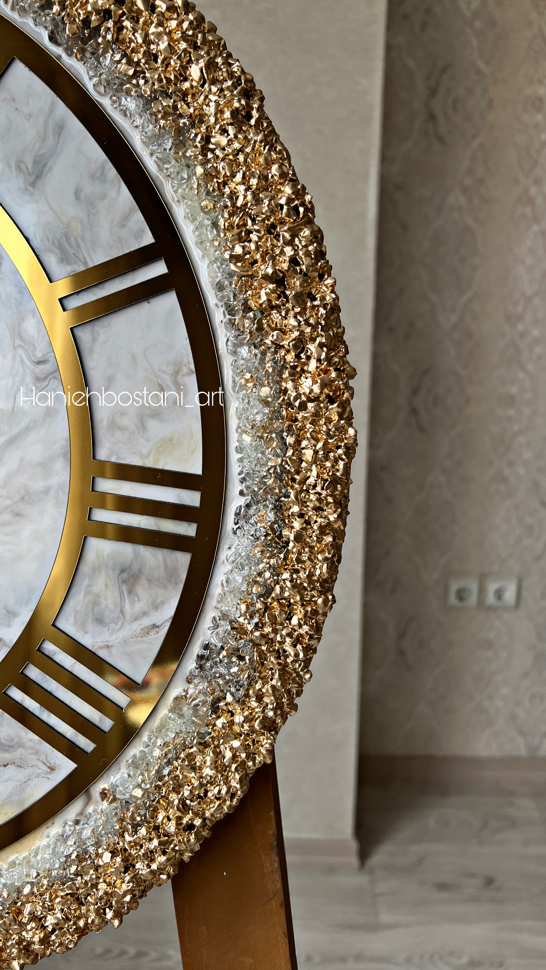 ساعت دیواری طرح مرمر سفید کرم طلایی
