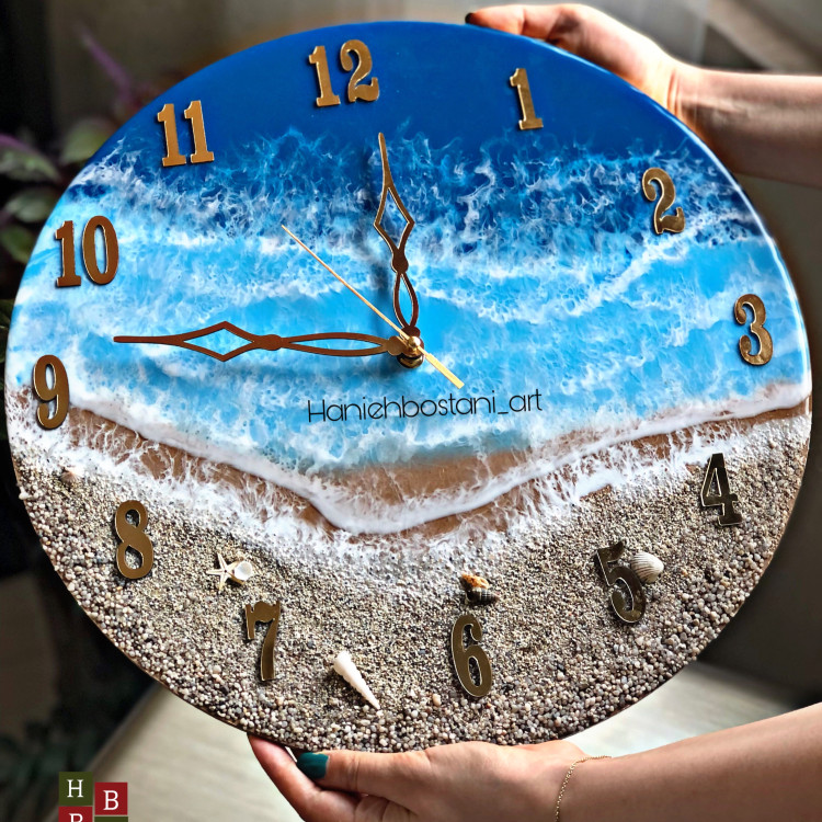 ساعت دیواری رزینی طرح خاص و آرامش بخش دریا