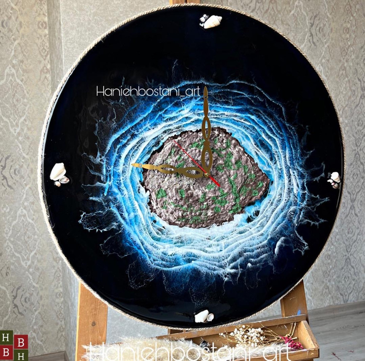 ساعت دیواری رزینی طرح خاص و آرامش بخش دریا مدل جزیره
