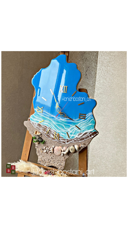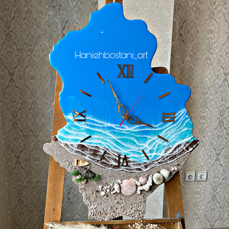 ساعت دیواری رزینی طرح خاص و آرامش بخش دریا مدل تکه ای از طبیعت
