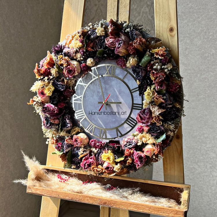 ساعت دیواری رزینی با گل های طبیعی جاودان شده