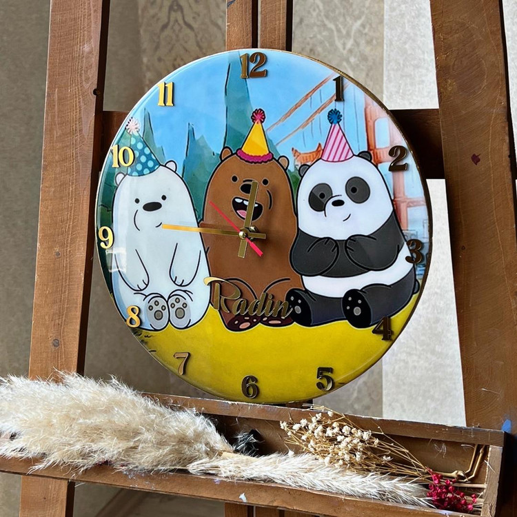 ساعت دیواری رزینی طرح کارتونی و اسم کودک
